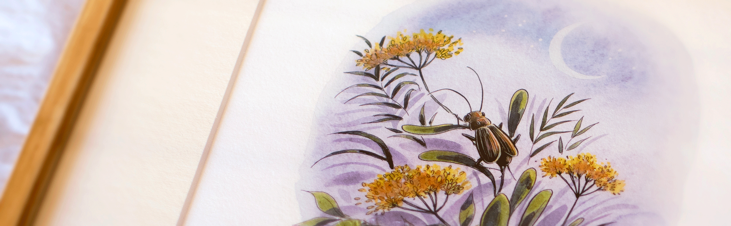 Inspirée par le vivant et la poésie du quotidien, c'est à la plume et à l'aquarelle qu'elle dessine la douceur et la magie de l'enfance.
